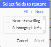 Any fields that have been deleted in the blast report can be restored by the restore button on the bottom left hand menu of the blast report. When selected, users can see any report fields that were deleted and restore them to the blast report.