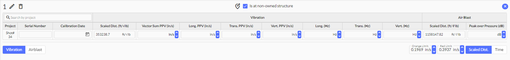Seismographs can be added under the Vibration and Airblast Module. Once added, data will need to be manually entered for post blast readings, which will then appear on the blast report. When adding a seismograph, there is an option to select "Is at Non - Owned Structure". This option will list the closest non - owned structure on the cover page of the blast report. In the report options, there is a toggle which will list additional non - owned structures if needed.