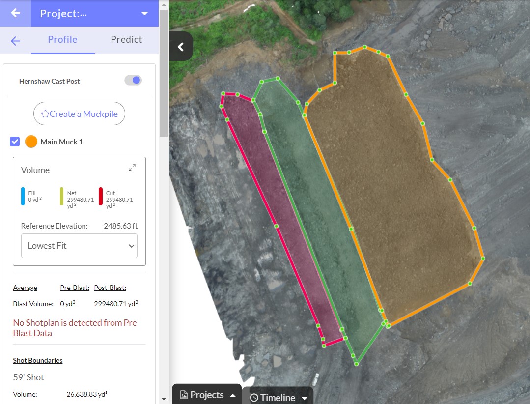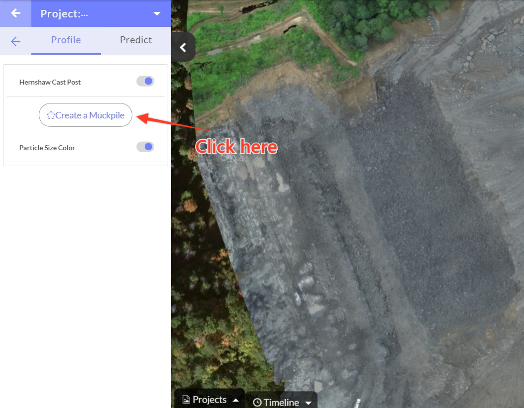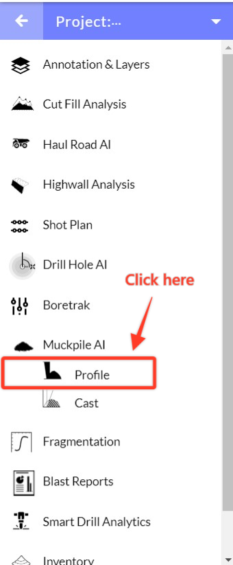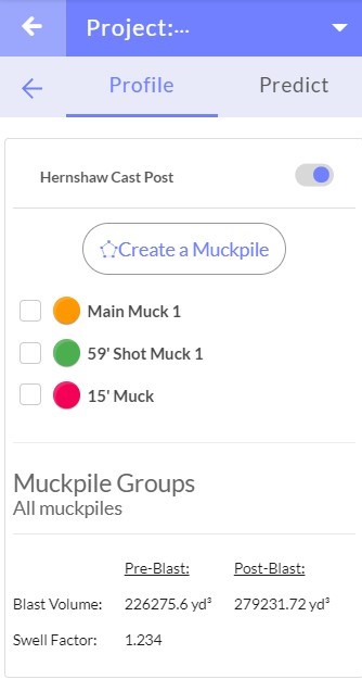 Navigate to the associated & linked post-blast dataset and click on Muckpile AI, and then navigate to "Profile"