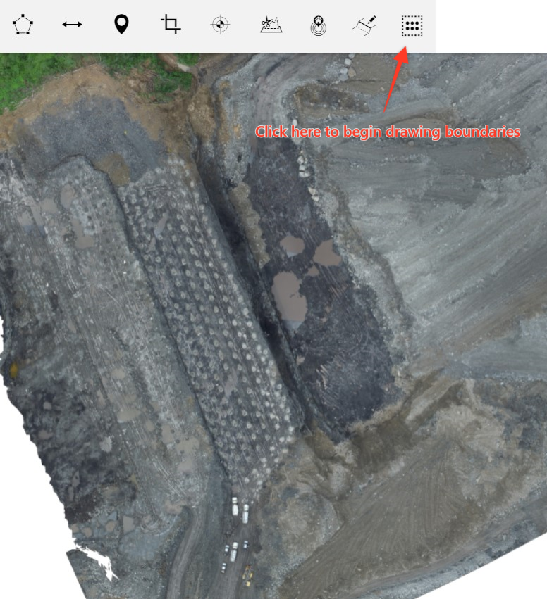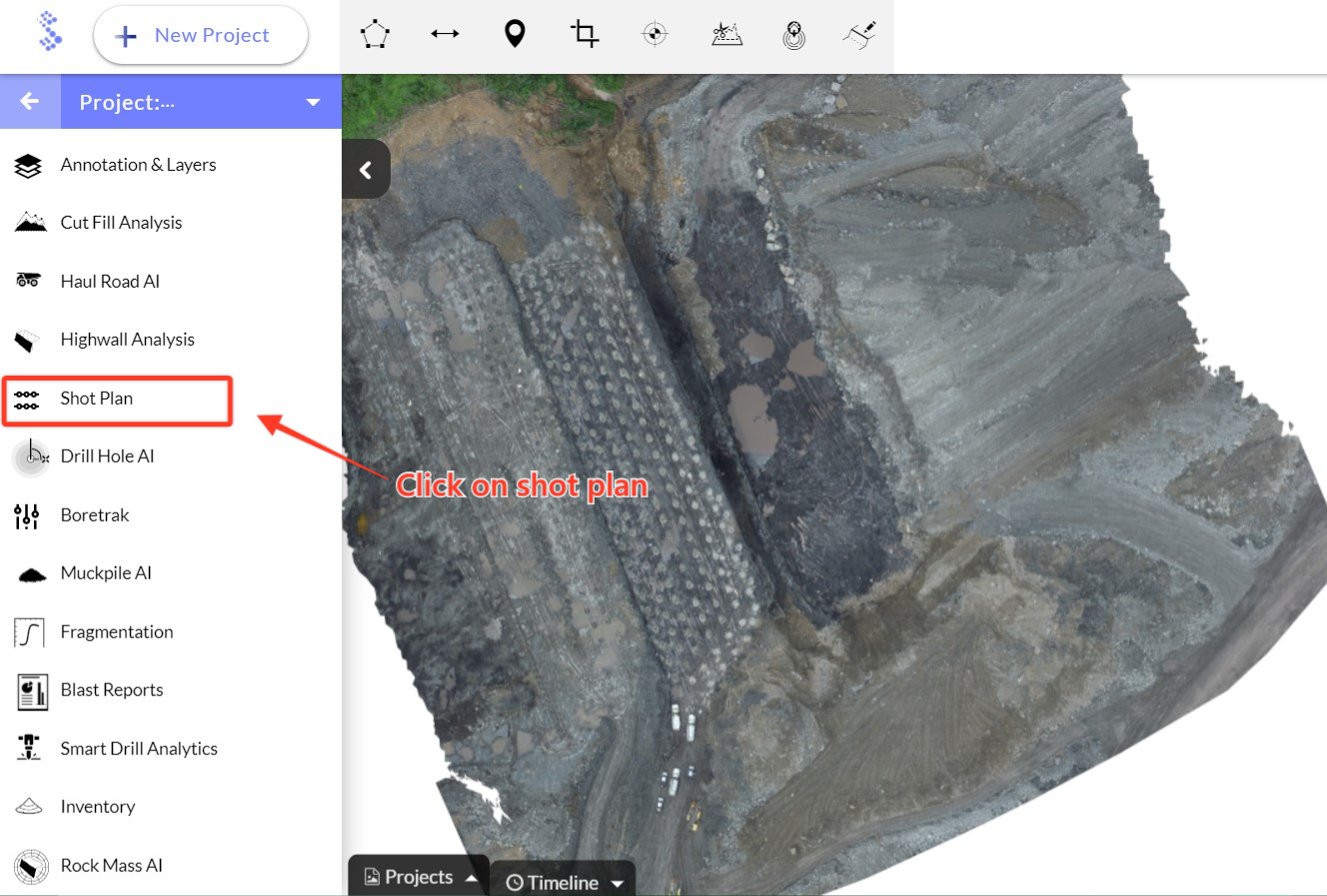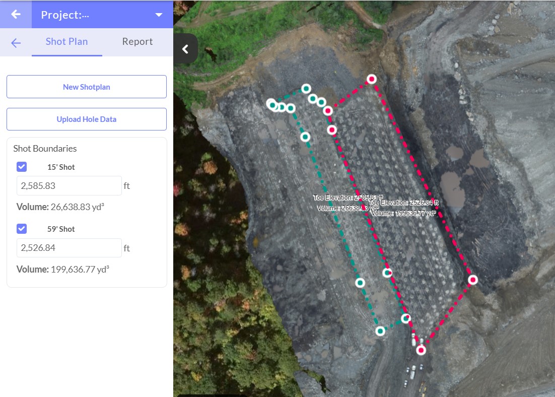 The shot boundary tool should appear once in shot plan, click on it and begin outlining your shot. If there are multiple shots, please create a separate boundary for each shot. This is because each shot may be drilled to different elevations.