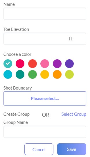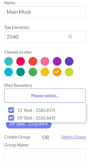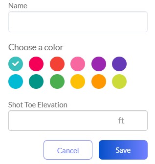 Once the boundary is drawn then the name, color, and toe elevation of that individual shot can be set.