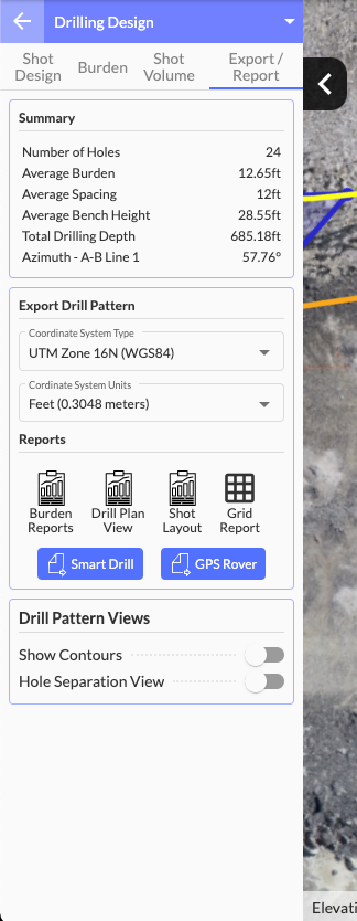 Once you have designed your drill pattern, there are four key reports you can generate.