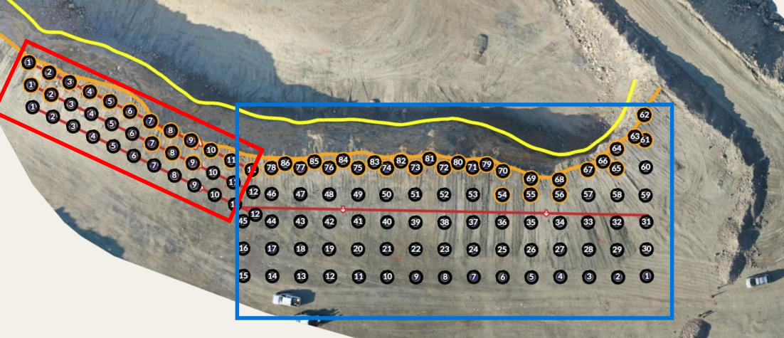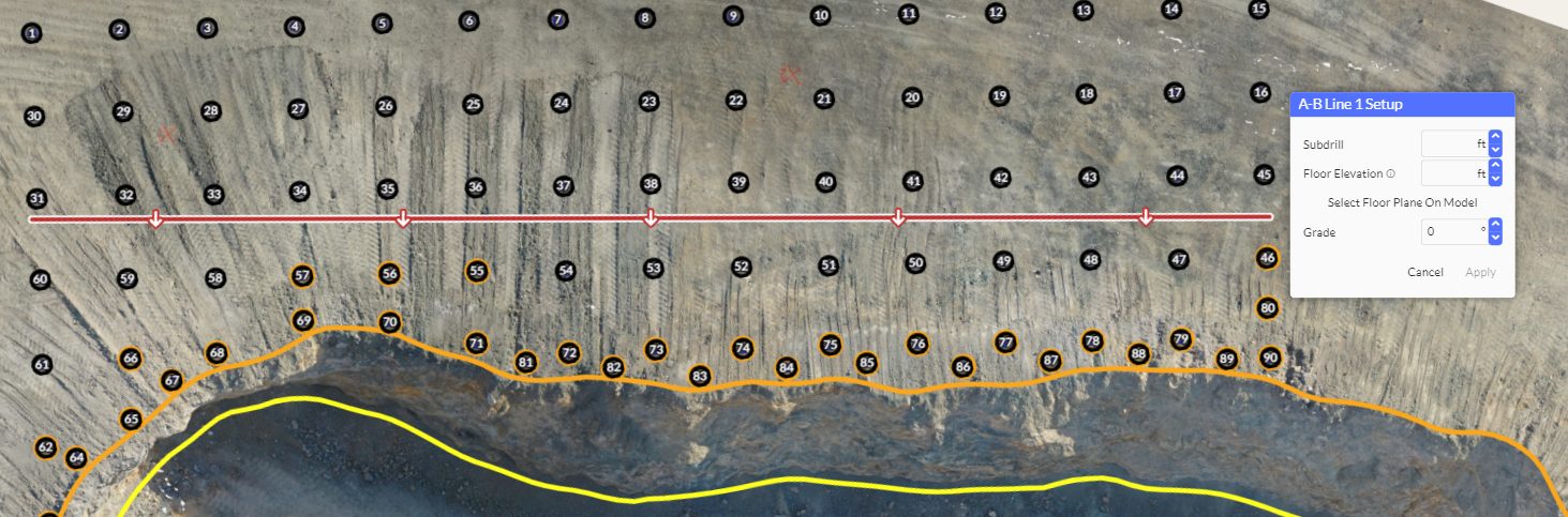 When designing a drill pattern, the Polygon and Crest tools serve as alternates to the AB line function. Polygon Tool: When the 'Draw Polygon' tool is selected, a custom blast area can be defined by outlining a polygon. Once the area is selected, the ...