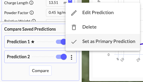 You can compare it with the Primary Prediction for the linked pre-blast project by toggling on "Compare with Prediction". Note: the first few times you do this the comparison may not be close as the prediction model is not yet calibrated to your site. As you enter more data, the predictions will become more accurate.