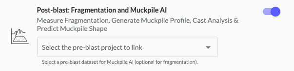 Create a new project using your muckpile images and ensure you switch on "Post-blast: Fragmentation and Muckpile AI" and link it to your pre-blast project containing the prediction.