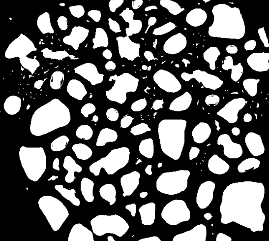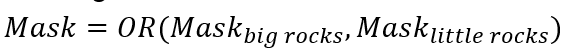 At this moment we have masks of separated big and little rocks. But such a mask corresponds to predicted high-probability of rocks and does not well cover boundaries of rocks.