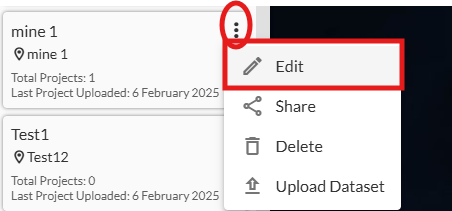 When looking to add explosive products to Strayos, users have the option to add their own products per site. To add such products, navigate to the site and click on the options: