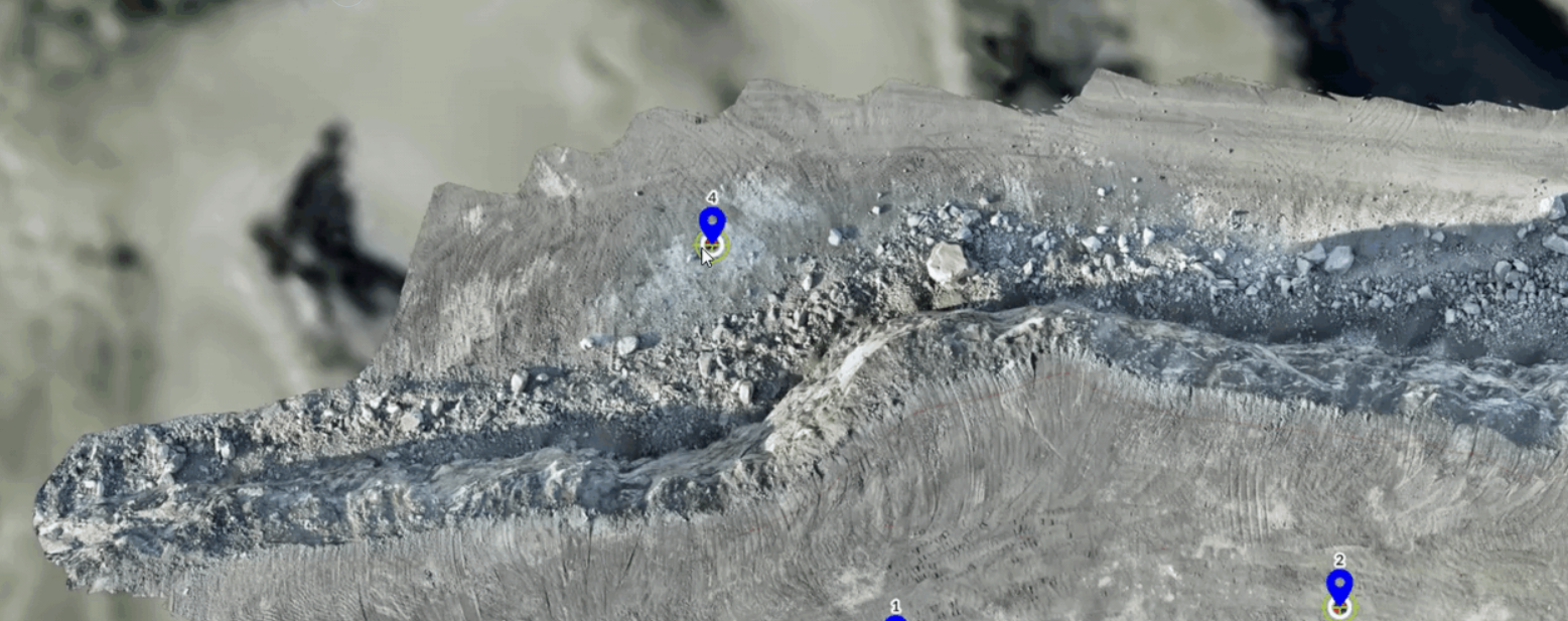Once uploaded, a map view will then appear. Here, you will see a green bullseye show the measured position from the CSV file. Move the blue marker to where the checkpoint exists on the model. This will then compare the difference between the measured position and the as processed position.