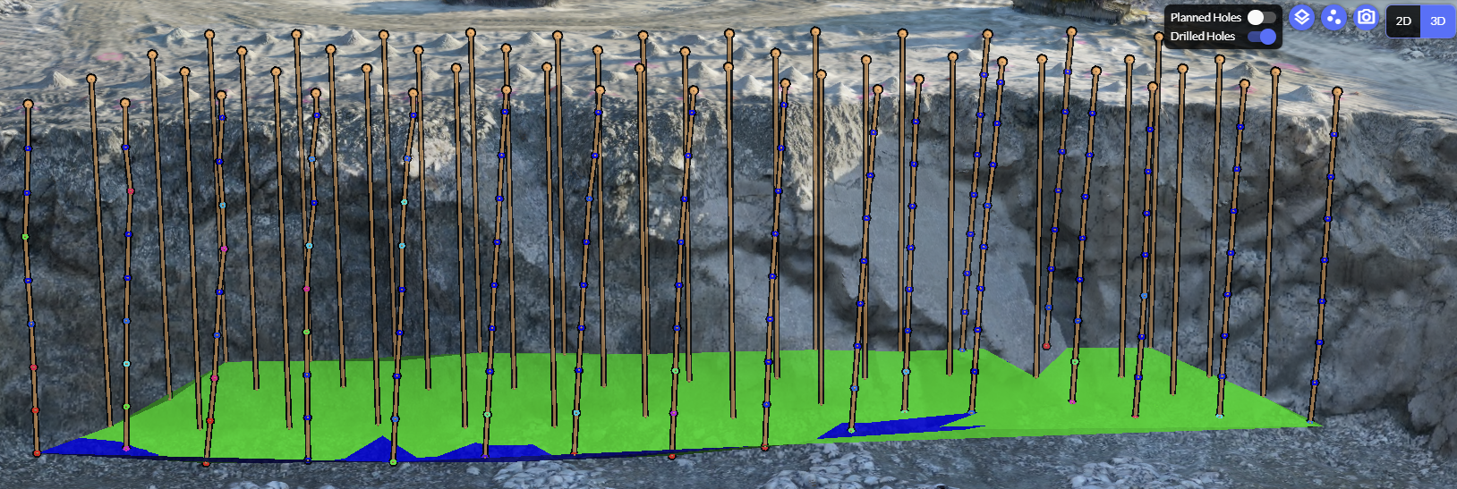 Next, select the option which you look to pull drill data from. Users can select either "Drilled Holes" or "Planned Holes" to view within the model.