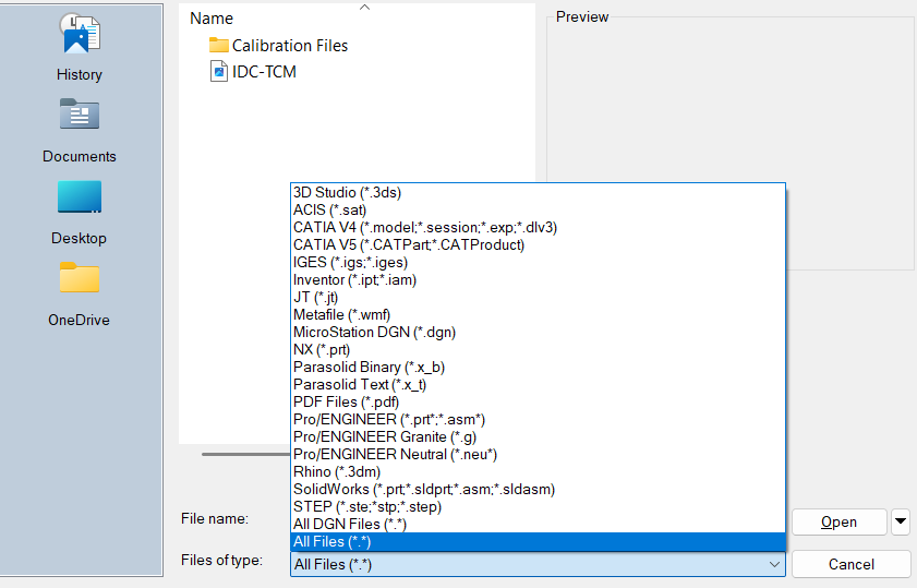 This will open up a file explorer where users can select the file and type that they are looking to bring into their CAD project: