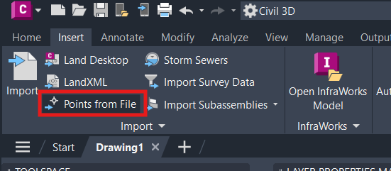 Specifically, if there are points that are looking to be brought in, the "Points from File" command should be used: