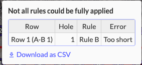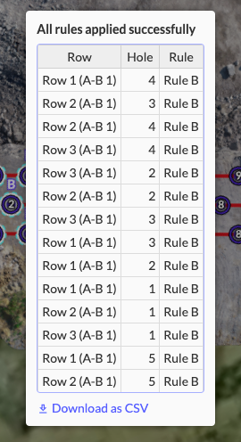 You will receive a confirmation pop up with details on which Rule was applied to each hole. You will also see here if there were any errors in applying the rules.