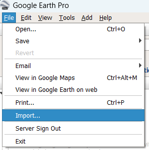 Once the download is completed, open Google Earth on your device and navigate to the Import option under File.