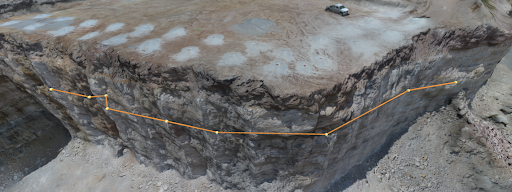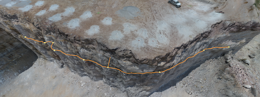 Aside from Strayos using AI to detect rock mass features, there is also a manual annotation tool that can be used to mark such features on a highwall. Our Rock Joint and Seam annotation tool is found on the annotation tool bar.