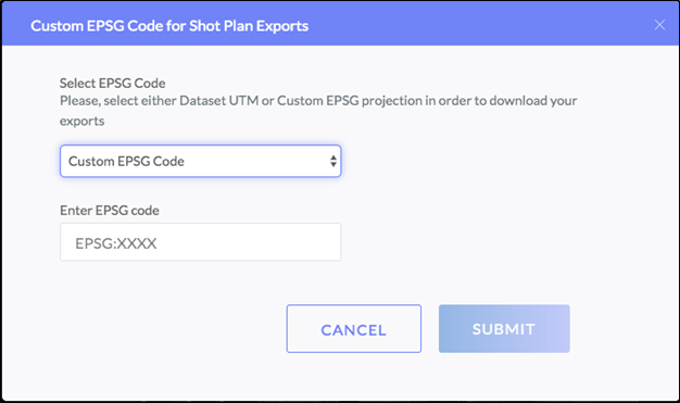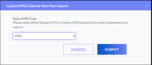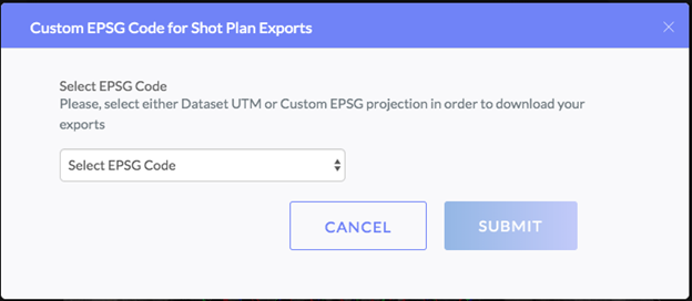 2. Custom EPSG Code will allow the Shot plan to be downloaded in specified EPSG Code