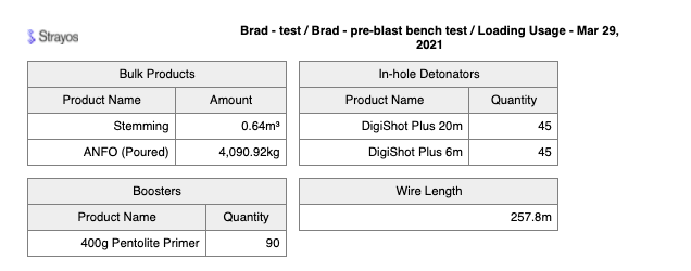 The usage report shows the amounts of each product used in the shot. It is exactly the same report as the one printed from the Loading Design module.