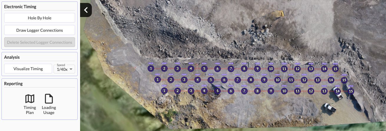 Creating logger paths is useful for making sure that you don't exceed the number of detonators for a blast box or logger. It helps you plan out how you are going to tie up the holes before getting out into the field.