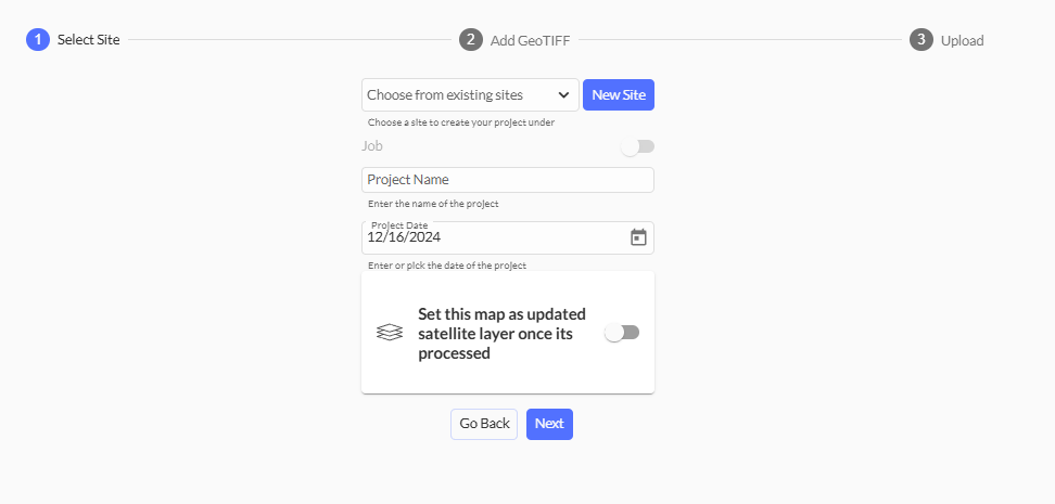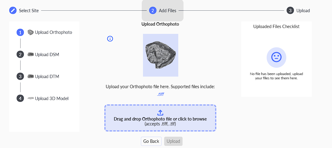 To upload your existing GeoTIFFs and 3D files, please follow the instructions below: