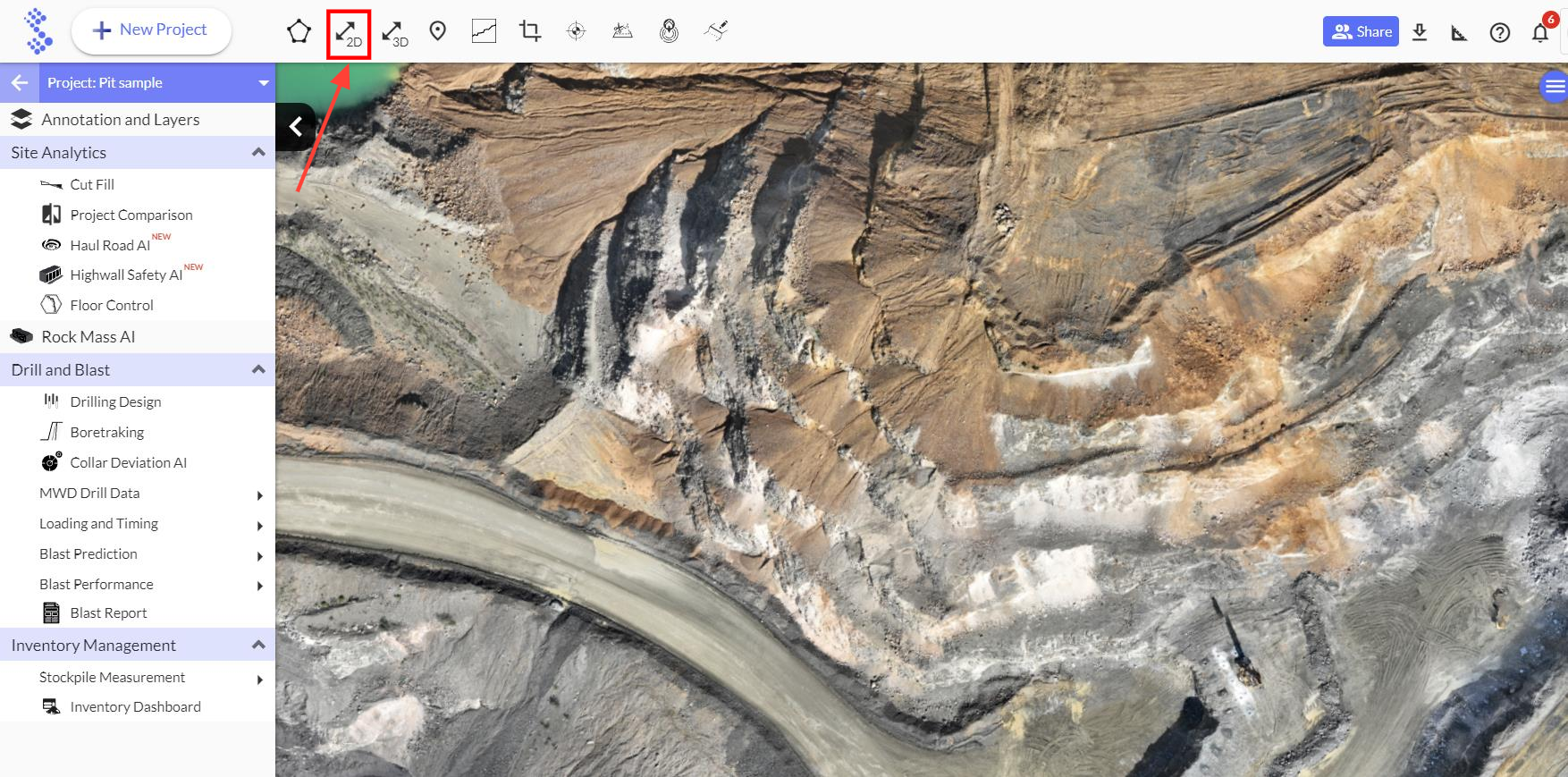 Strayos allows users to draw 2D annotation lines with an angle snapping feature (similar to the AutoCAD function Object Snap). To utilize this feature, click on the 2D annotation line in the top tool bar.