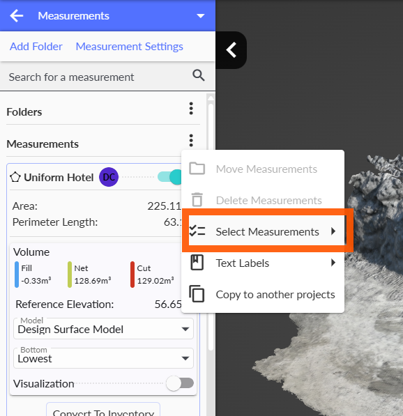 The user can now copy multiple measurements at the same time. By clicking the three dots, a menu opens where the user can select Select Measurements. From there, multiple measurements can be chosen and copied at once.