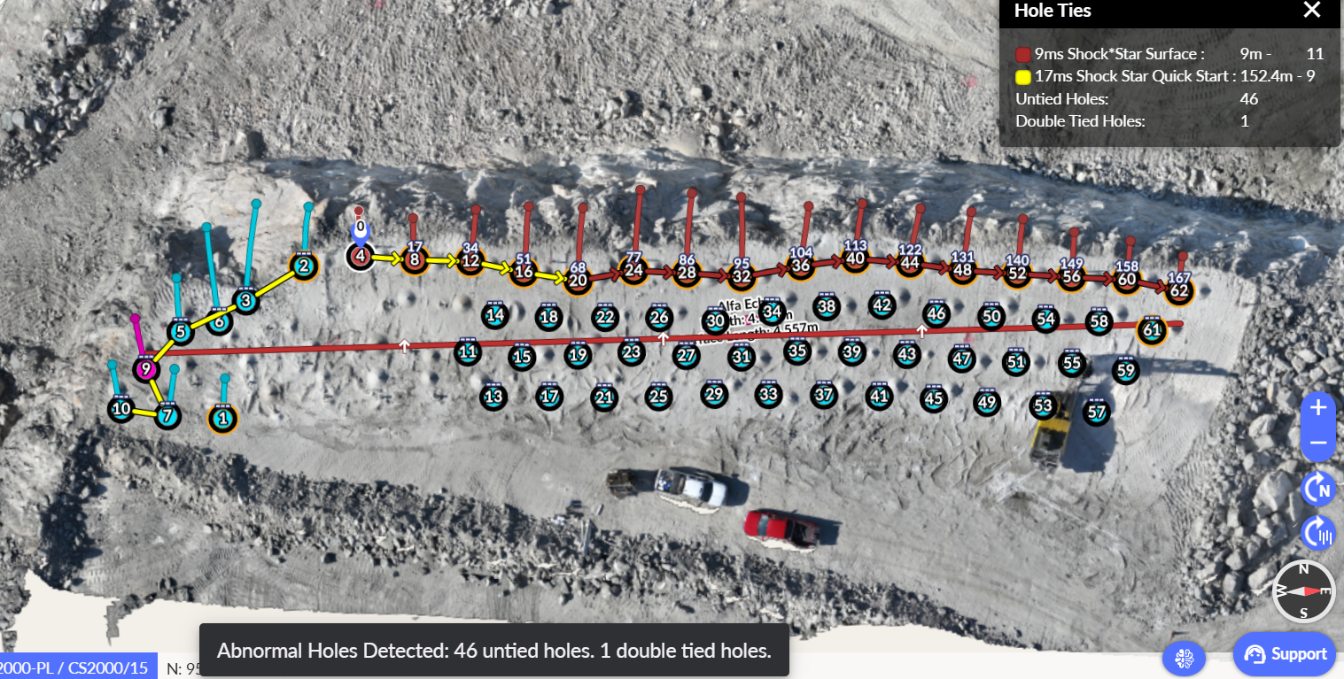 - Enhanced Toe Burden Visual - The new collar and toe burden visual allows users to see the inter-hole connections which the inter-hole burden calculation is based. This reports the closest inter-row burden measurement.