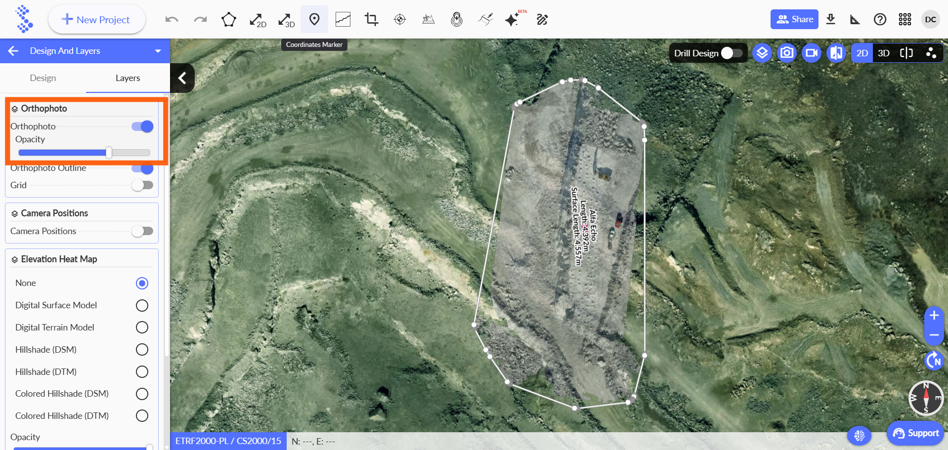 New update to the design and layer tools allows users to adjust the opacity of the orthophoto for better visualization and control.