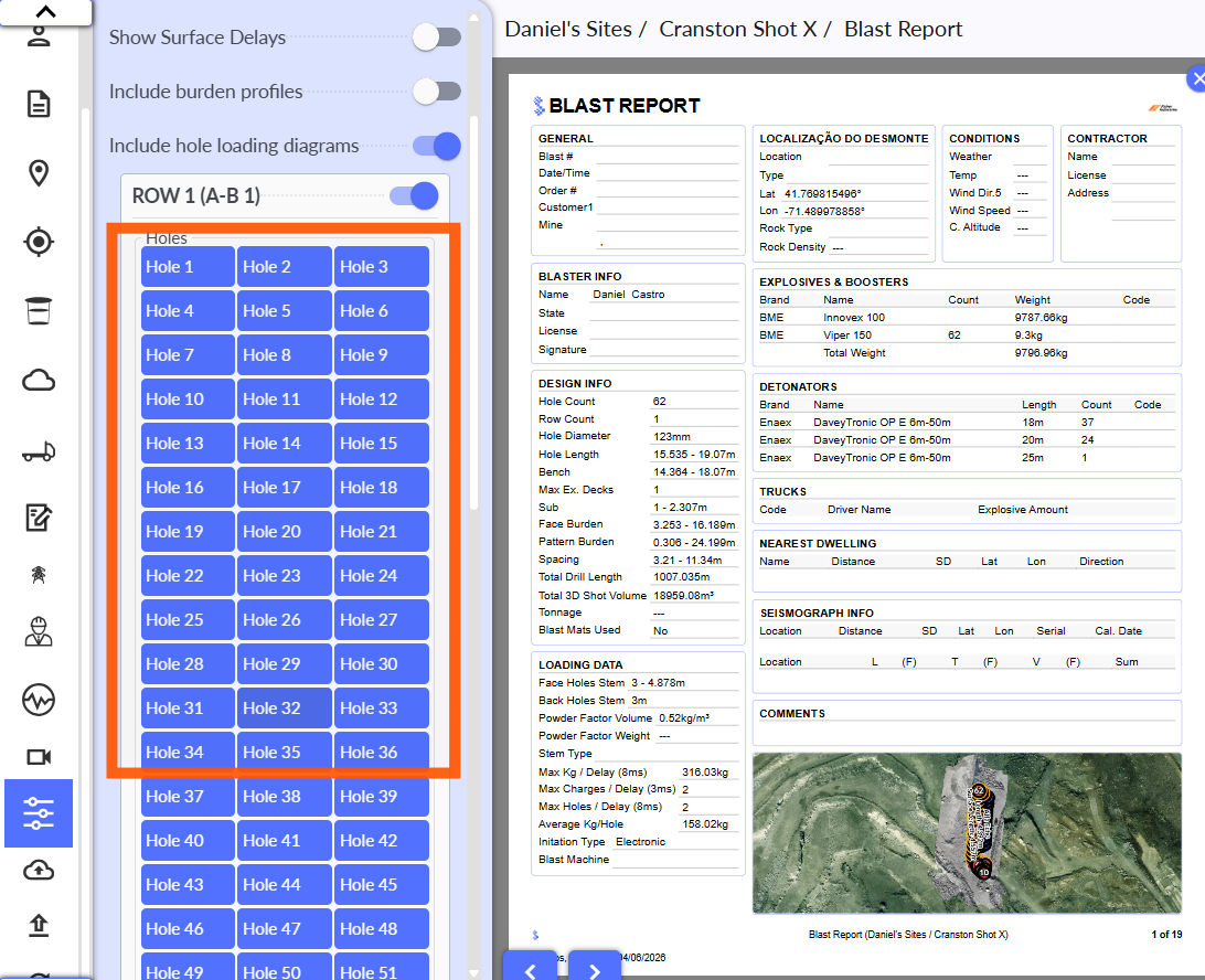 Feature to select which holes to show the loading diagrams for in the blast report.
